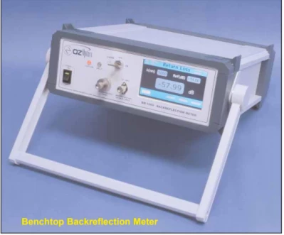 The OZ Optics Limited Benchtop BM-1000 and BM-2000 Backreflection Meters measure the total accumulated optical return loss that is reflected back through a pigtailed fiber optics device or fiber under test. The measured reflections are caused by Rayleigh scattering, sudden changes in the refractive index within the device under test (DUT), or from connector ends.