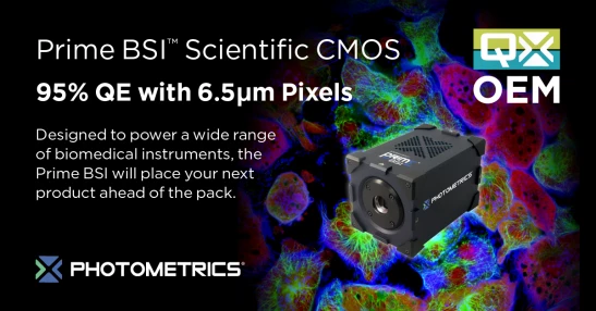 The Prime BSI Scientific CMOS camera delivers the perfect balance between high resolution imaging and sensitivity with an optimized pixel design and near perfect 95% Quantum Efficiency to maximize signal detection.