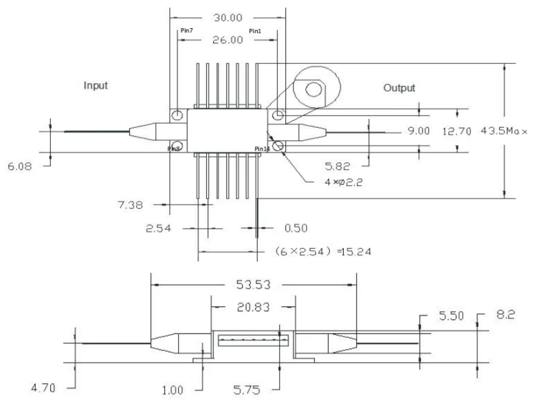 The SOA also features a shutdown extinction ratio of over 35dB, enhancing its performance in various operating conditions. The 1550nm SOA is packaged in a compact and durable 14PIN Butterfly enclosure, measuring 30mm in length and 26mm in width. It includes a thermistor for temperature monitoring and a TEC (Thermo-Electric Cooler) for precise temperature control.