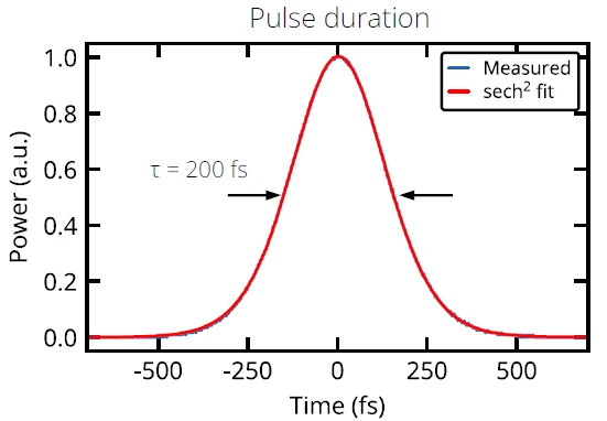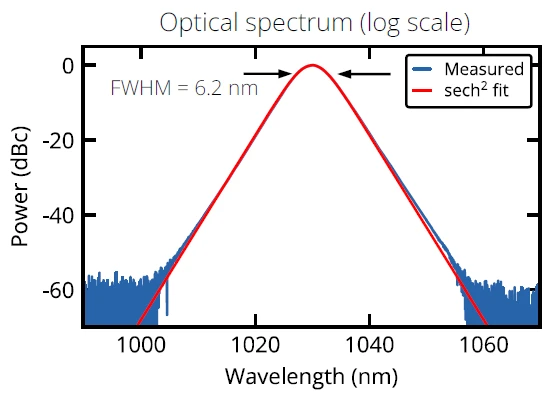 - Spectrum: Sech2-shaped spectrum with a bandwidth greater than 5 nm.