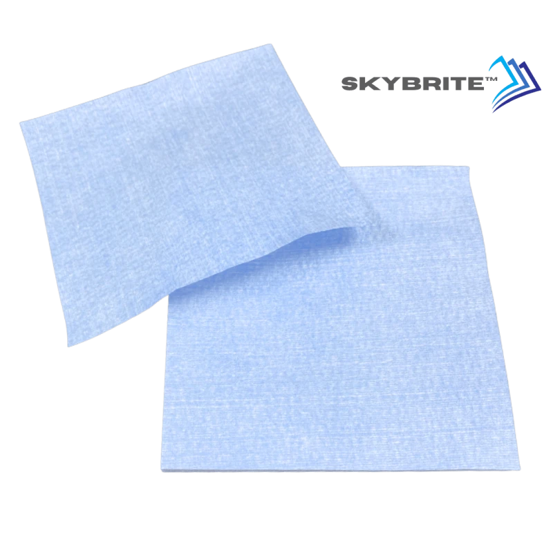 SkyBrite™ is your go-to lint-free wipe for cleaning optical and photonic components — including your Krell machine itself. Made from a durable hydro-entangled polyester and cellulose blend, these wipes deliver exceptional performance dry or with solvents. Their signature blue color darkens when wet, giving you instant visual feedback and precise control during cleaning or film prep.