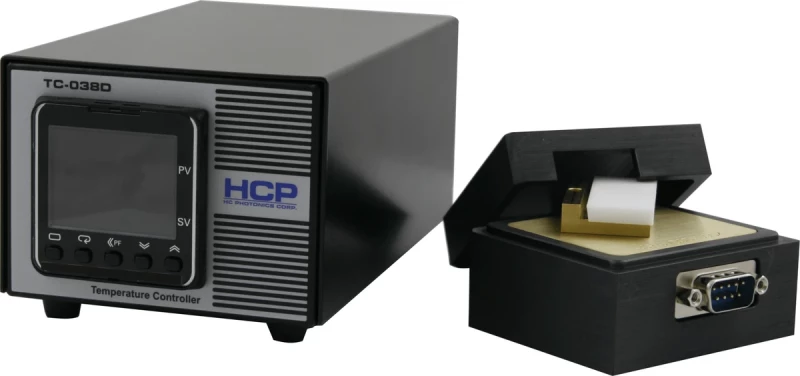Temperature control set is specifically designed for thermal management of different kind of non-linear crystals including bulk and waveguide such as PPLN, PPLT, PPKTP, KTP and etc. Temperature controller, TC-038D, goes along with different ovens (OV-30D, OV-50D, WG OVENs) with extreme temperature tunability up to 200 deg. C and stability. TC-038D is programmable, with the common I/O interface through USB connection.