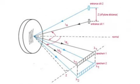 When an area detector such as a CCD is utilized, it is often possible to focus multiple sources onto the entrance slit and independently evaluate the spectrum from each source. These “Imaging Gratings” are nearly free from astigmatism, and therefore only one fixed optical element is required to construct an imaging spectrograph.